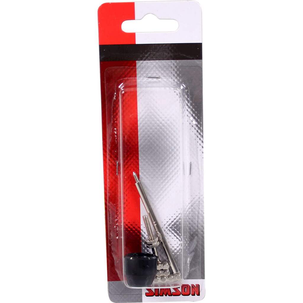 De Simson Versnellingsstift S.A. met 2 stiften is een versnellingsstift met twee strepen van Sturmey Archer. De twee strepen is de codering voor het instellen van de versnelling. Let op: het aantal strepen moet zowel op de oude als de nieuwe stift overeenkomen. Steek de stift in de naaf en draai deze vast. Stel de versnelling vervolgens af op de binnenkabel.